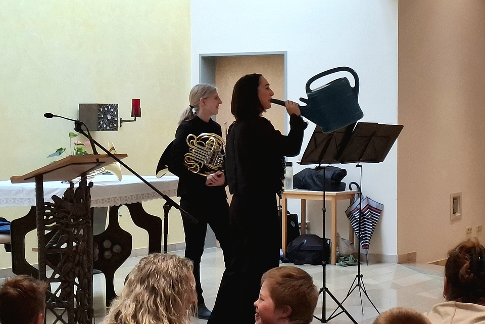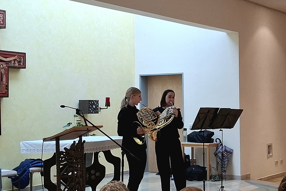 Schon zu einer schönen Tradition geworden sind die Konzerte von „Live Music Now“ (Stiftung von Yehudi Menuhin) an der Dominikus-Schule. Organisiert von Dr. Christian Müller luden die Hornistinnen Donata Ott und Carina Wachter zu einem abwechslungsreichen Programm in die Kapelle St. Franziskus ein. Bei traditionellen Stücken wie „Scarborough Fair“, bei einem Filmmusik-Medley und bei Mitmach-Liedern wie „Let´s twist again“ und „The Entertainer“ entlockten sie ihren Waldhörnern wunderbare Töne und ernteten begeisterten Applaus.