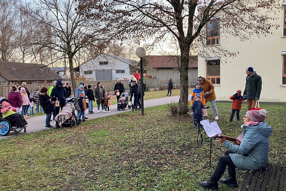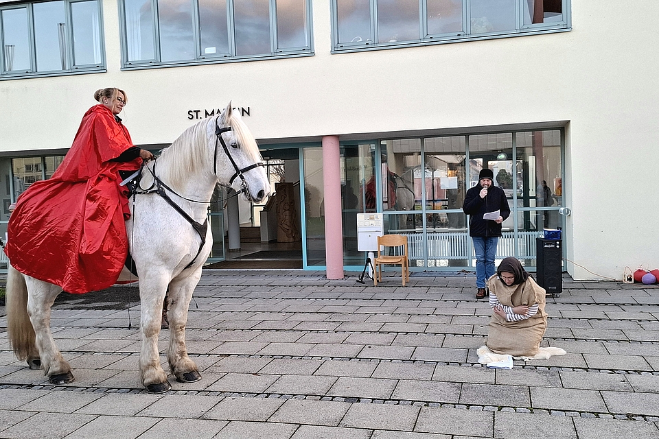 Gespannt verfolgten die Kinder mit ihren Eltern, Geschwistern, Omas und Opas das Martinsspiel. Anschließend folgte ein Umzug ums Haus St. Martin mit den allseits bekannten Martinsliedern.